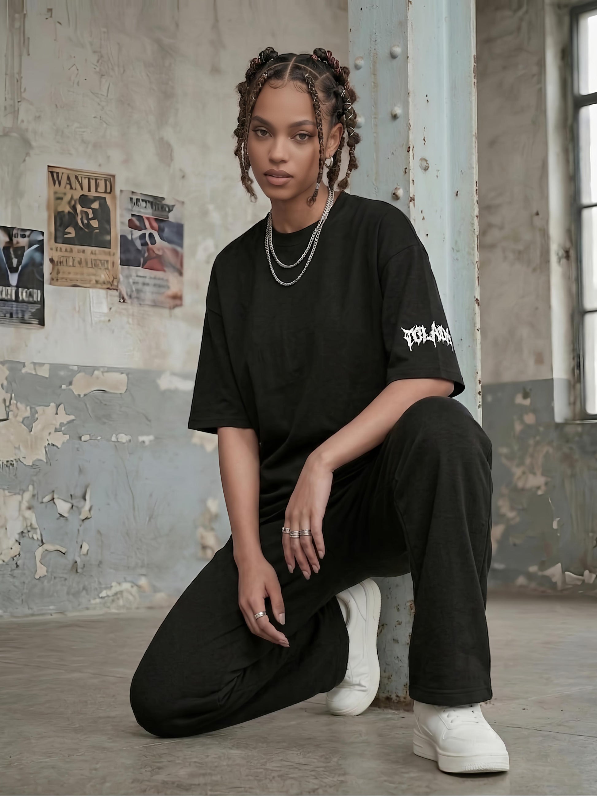 Built for presence, not just comfort. This oversized black tee from Colada delivers a clean silhouette with a bold edge, finished with our signature sleeve branding that speaks without trying too hard.