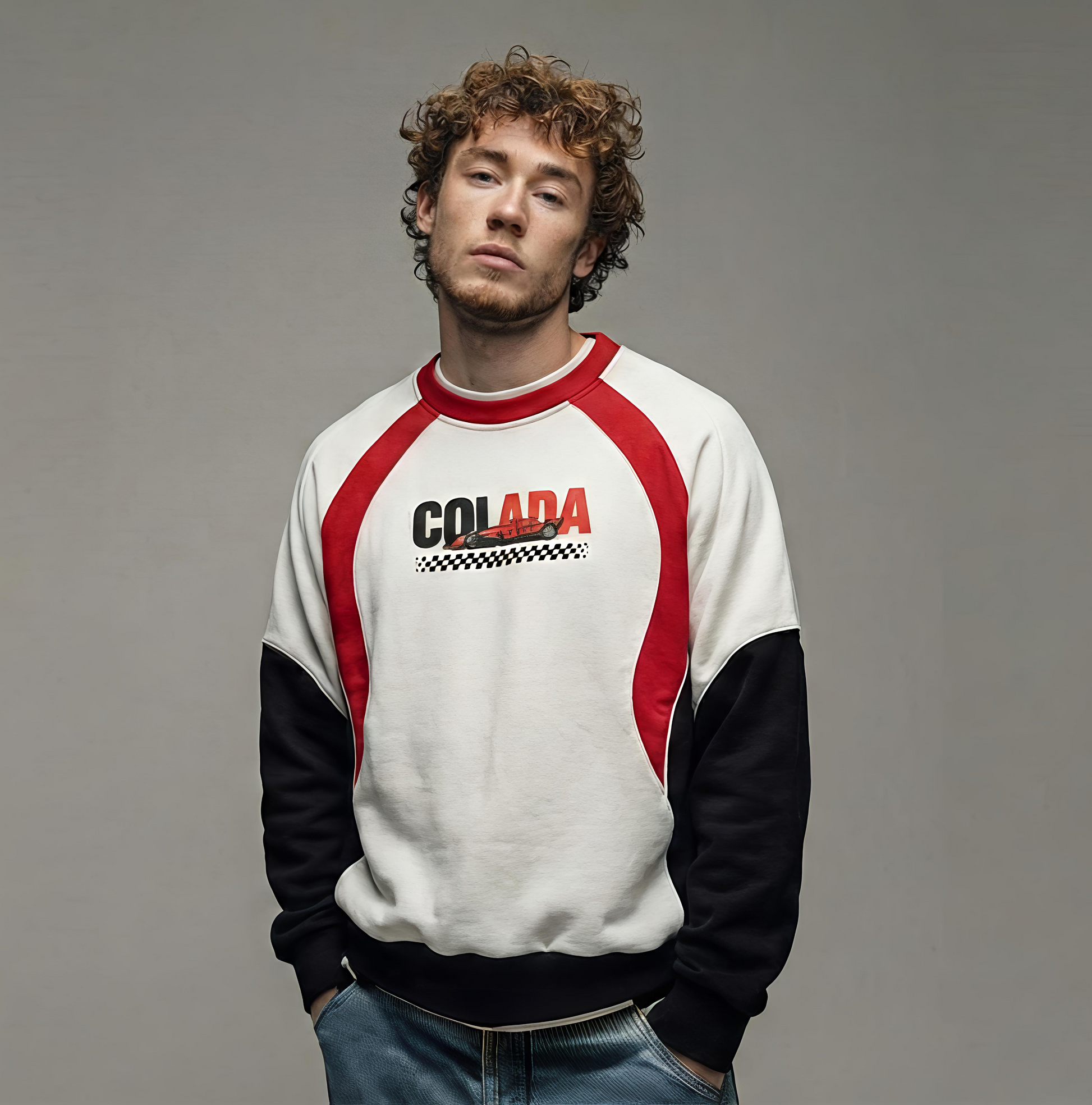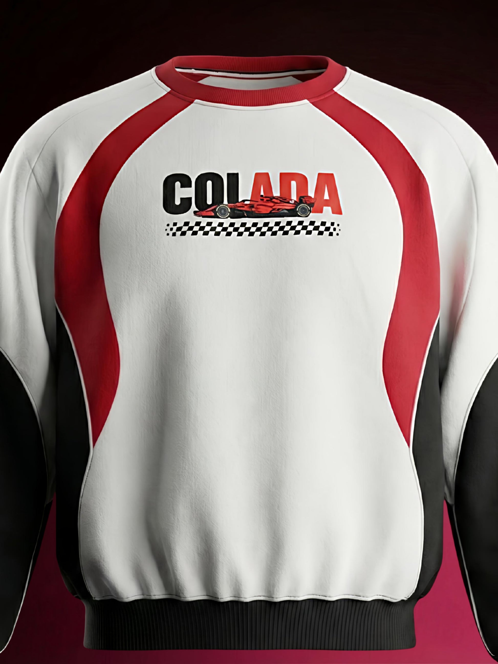 Engineered for speed and styled for the streets — this crewneck features a bold DTF front print with a detailed F1-inspired car and signature COLADA branding. The dynamic 3D colour pattern brings depth, contrast, and movement to the design, giving it a true race-day aesthetic.