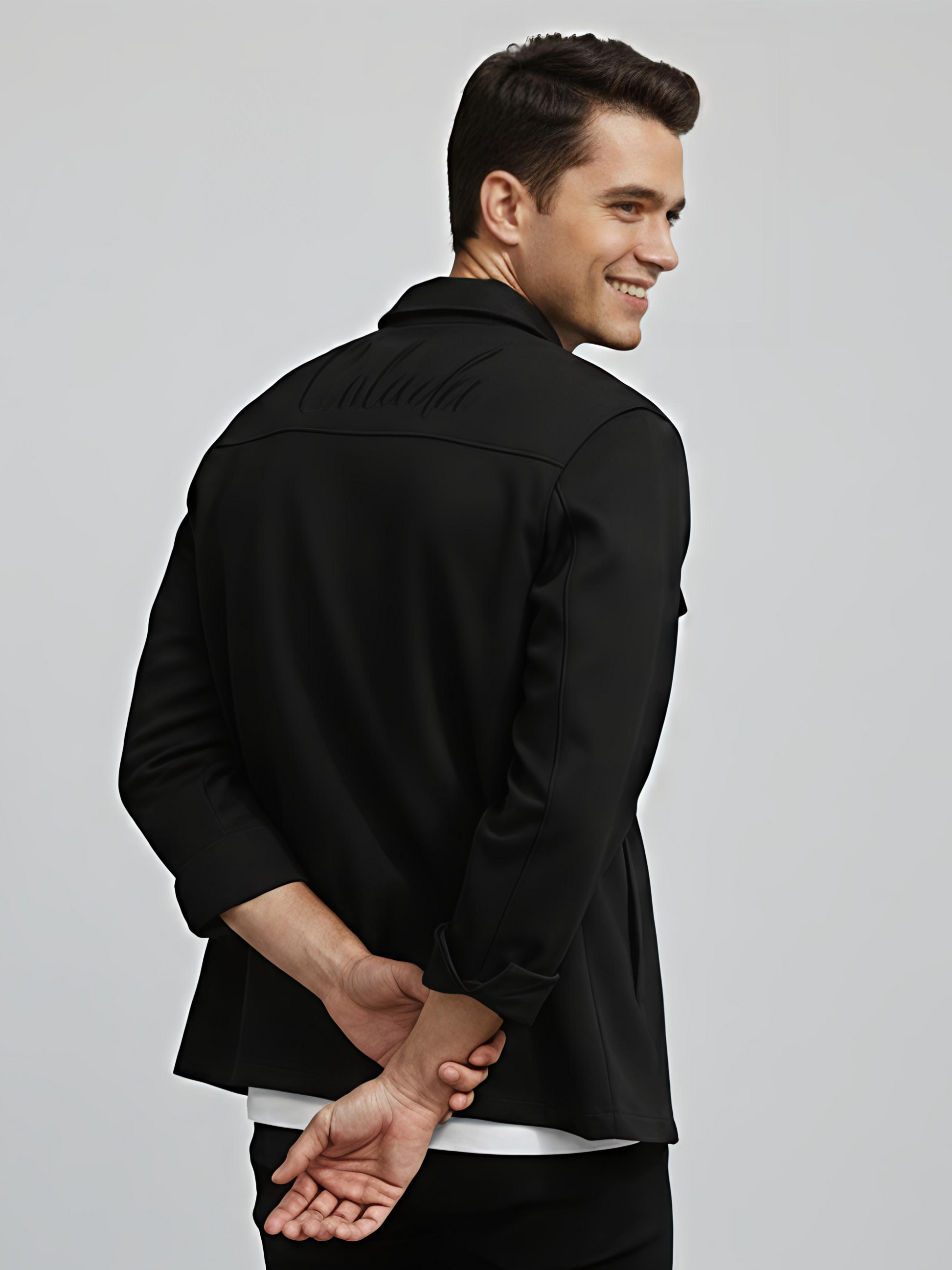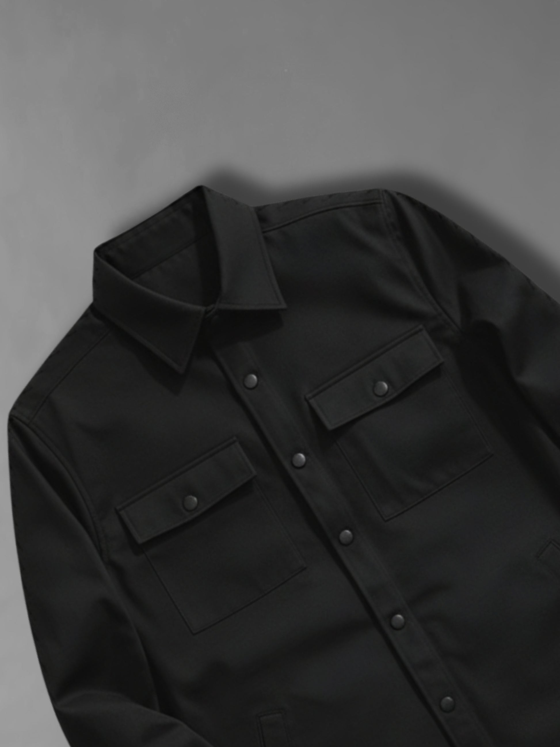 he CLD Black Shacket is crafted from a premium cotton twill blend with polyester and spandex, giving it a perfect balance of durability, softness, and stretch. Designed to move with you, it feels smooth on the skin while holding a sharp, elevated silhouette.