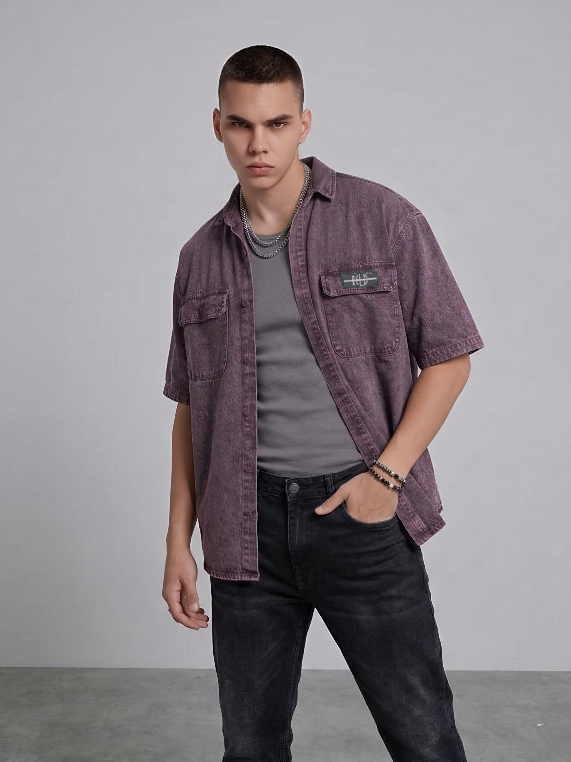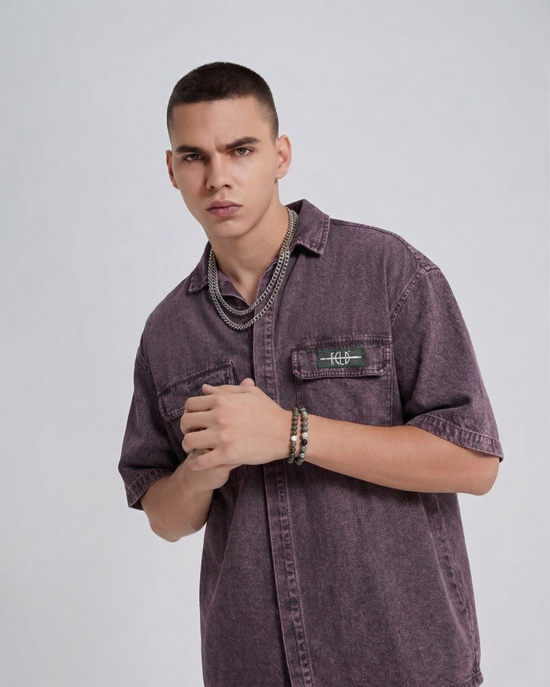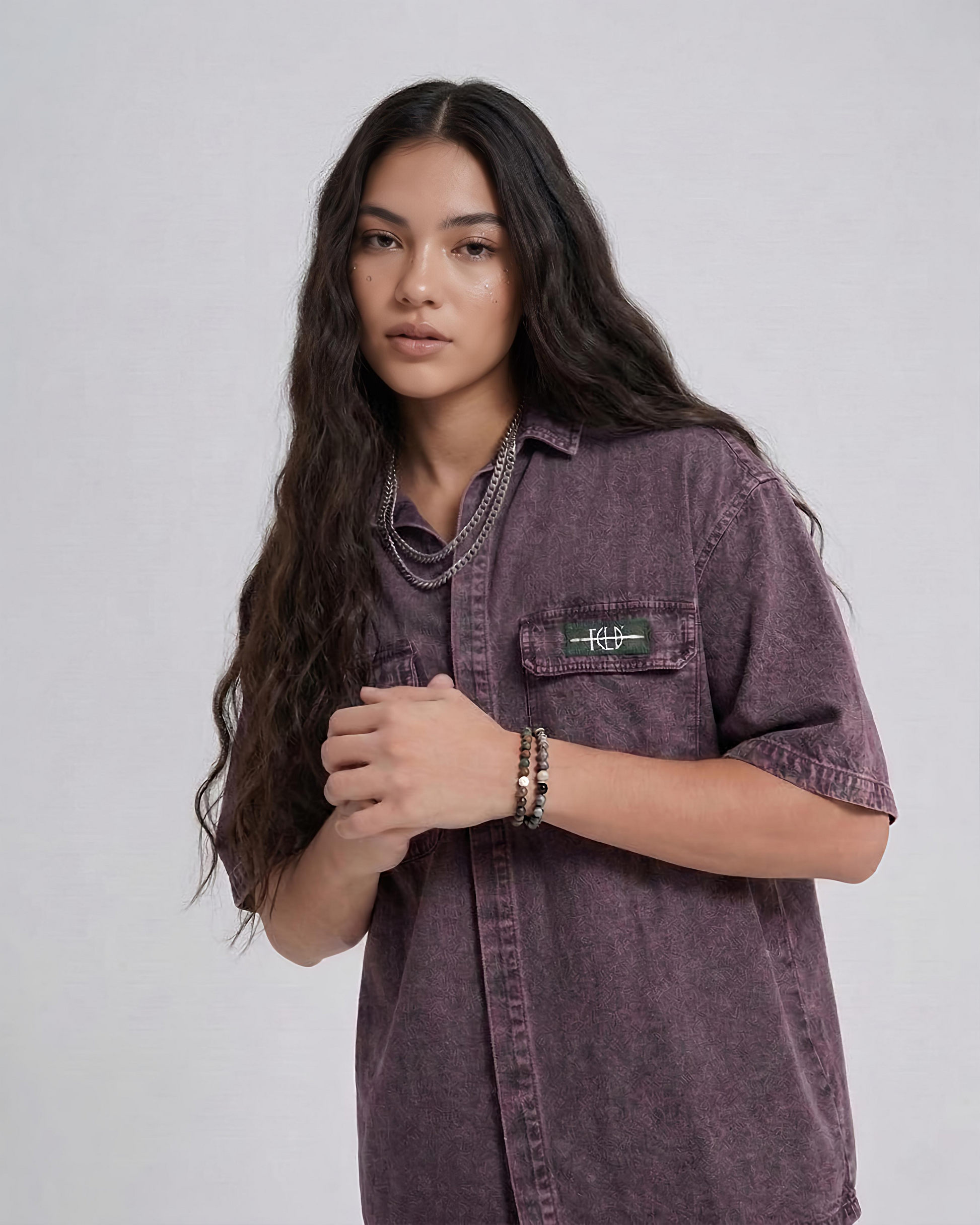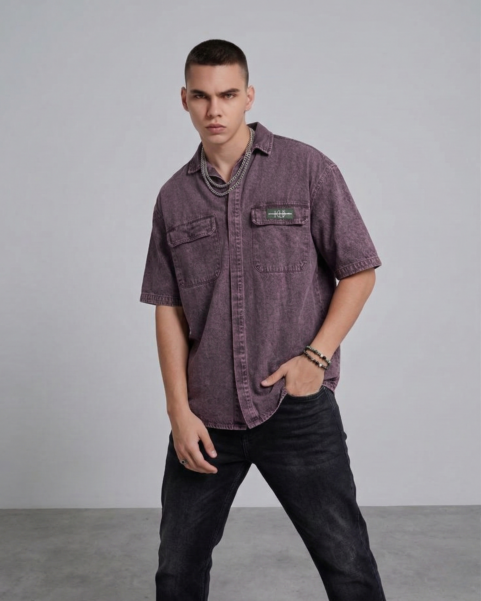 Elevate your style with our Cotton Denim Acid Wash Oversized Shirt, designed for those who embrace bold fashion with effortless comfort. Crafted from premium cotton denim, this half-sleeve shirt features a unique acid-wash finish, giving it a rugged yet stylish edge. Equipped with double front pockets, one adorned with a signature silicon label showcasing a sword—a powerful emblem of Colada. The snap fasteners ensure easy wearability, making it a perfect go-to piece for layering or a standout on its own.